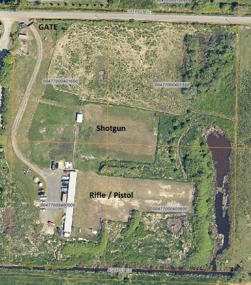 Take Highway 2 onto the trestle. Travel about ¾ mile, then take the right exit onto Homeacres road. Go straight at the first stop sign; turn right at the second. The road will curve 90 degrees to the right (west). About 1/4 mile later the road turns 90 degrees to the left (south). After travelling approximately one mile, turn left onto 38th Street SE. The intersection is marked with a range sign. The range is located about 200 yards east on the right, beyond a well marked gate.